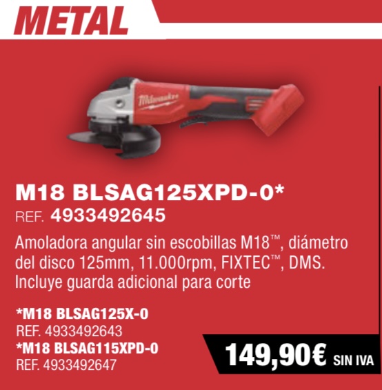 Sé el primero en valorar “Amoladora angular de 125MM MILWAUKEE M18 BLSAG125XPD-0”